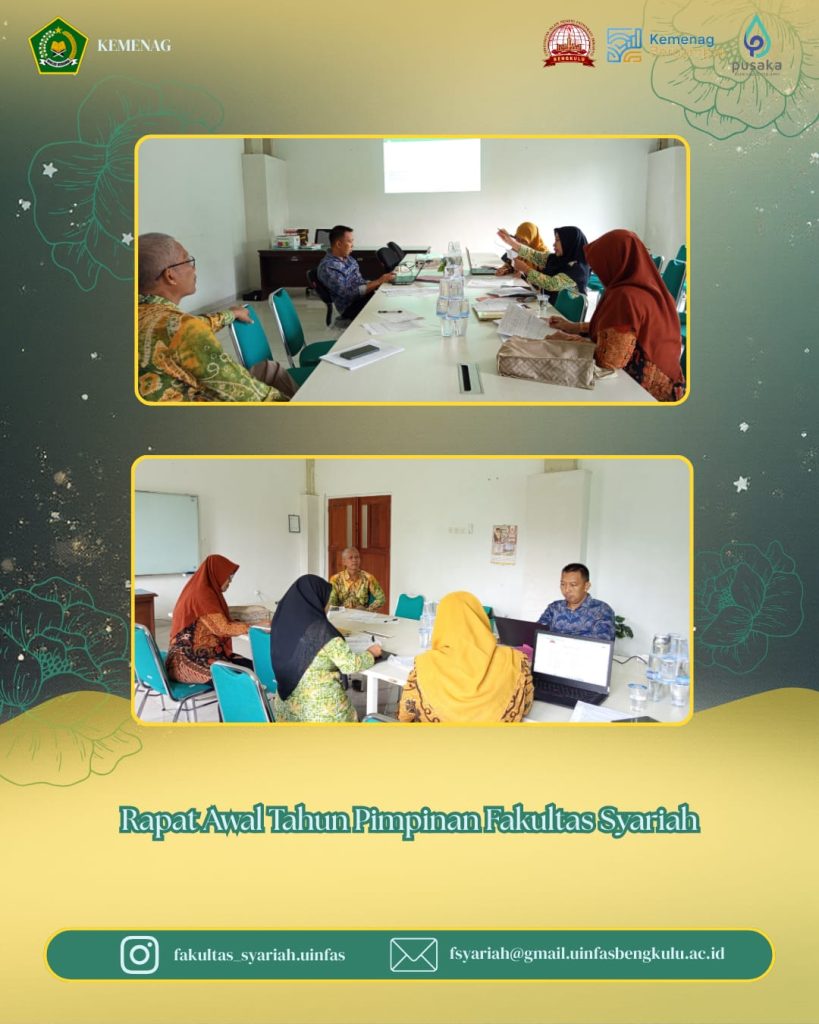 Bengkulu – Fakultas Syariah Universitas Islam Negeri (UIN) Fatmawati Sukarno Bengkulu menggelar Rapat Awal Tahun Pimpinan sebagai langkah strategis dalam menyusun dan menyelaraskan program kerja fakultas untuk tahun berjalan. Kegiatan ini berlangsung di lingkungan Fakultas Syariah dan dihadiri oleh seluruh unsur pimpinan fakultas.