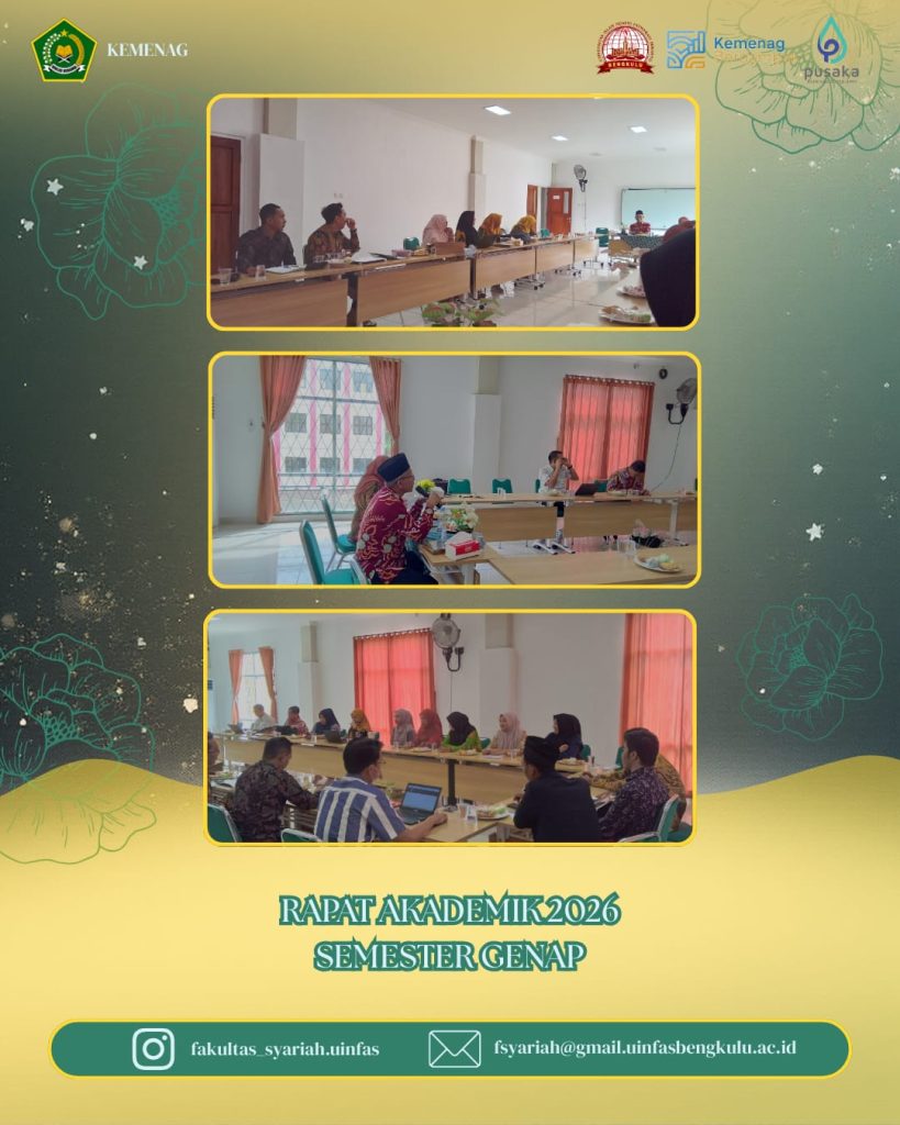 Fakultas Syariah UIN Fatmawati Sukarno Bengkulu menggelar Rapat Akademik Semester Genap Tahun Akademik 2025/2026 pada Rabu, 21 Januari 2026, bertempat di Ruang Rapat Fakultas Syariah. Kegiatan ini dihadiri oleh pimpinan fakultas, ketua dan sekretaris program studi, dosen, serta tenaga kependidikan.